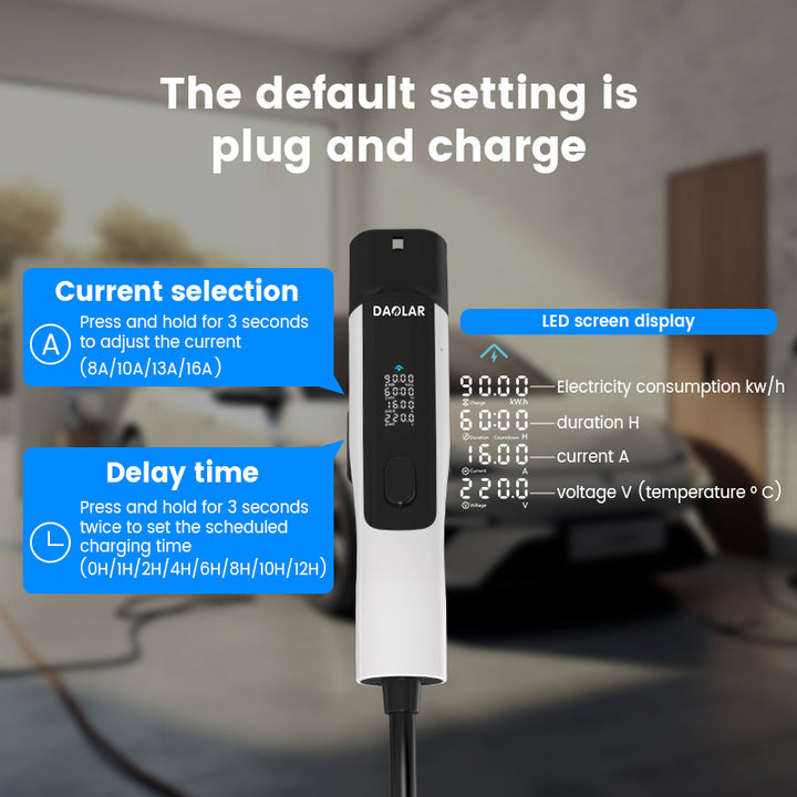 - Carga programada de 1 a 12 horas, inteligente y económica: Pulsa dos veces durante 3 segundos para establecer una **carga programada** de 1 a 12 horas. Aprovecha las tarifas eléctricas fuera de pico en Europa; despierta con el coche totalmente cargado, ¡ahorrando tiempo y dinero!