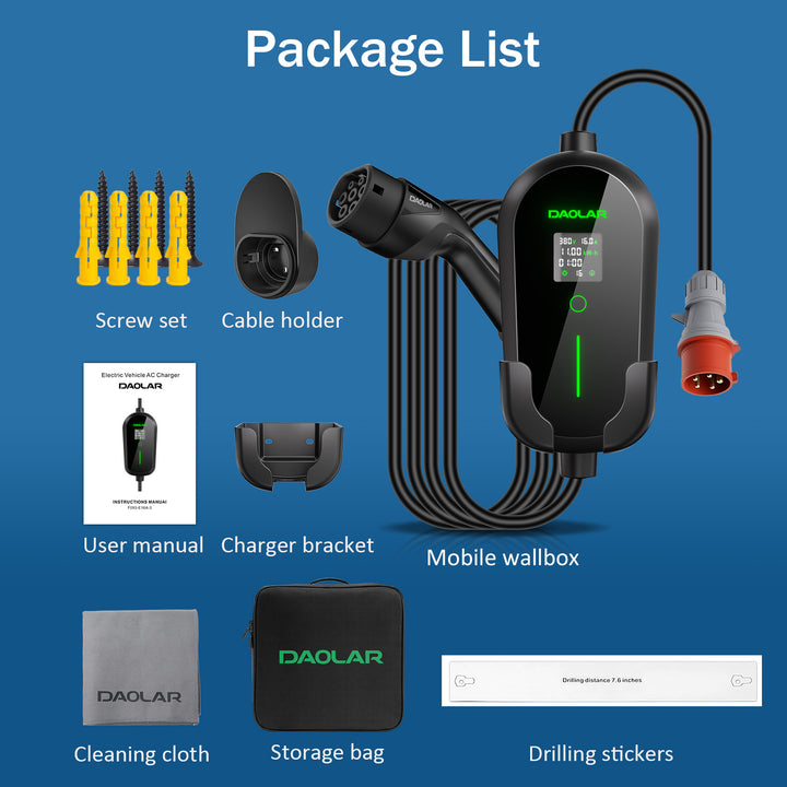 Descubra una carga rápida, flexible y asequible para su vehículo eléctrico con el Wallbox móvil Daolar F097-11KW.
