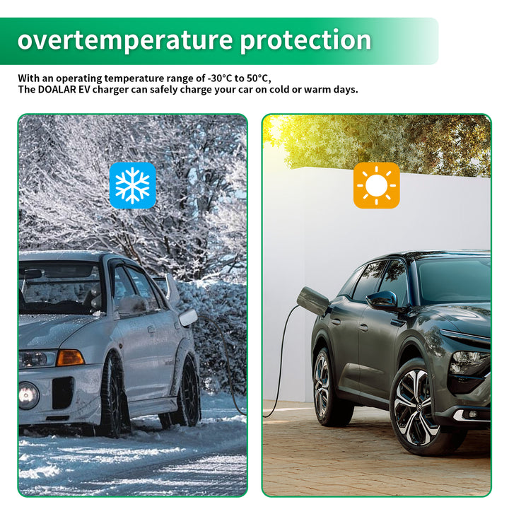 ✅Diseñado para durar: nuestro cargador para coches eléctricos ha sido sometido a rigurosas pruebas para garantizar una larga vida útil. Puede soportar una caída desde 1 metro de altura y la presión de objetos pesados de hasta dos toneladas. Esto significa que seguirá funcionando correctamente incluso si se le cae accidentalmente o aparca el coche sobre el cable.
