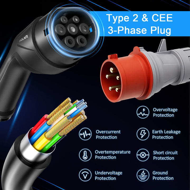 El cargador Wallbox cuenta con un conector estándar Tipo 2, lo que lo hace ampliamente compatible con las principales marcas de vehículos eléctricos, como BMW, Tesla (con adaptador), Ford, Nissan, Toyota, Hyundai, Honda y más. Tanto si conduce un vehículo eléctrico de batería (VEB) como un híbrido enchufable (VEPH), este cargador trifásico de 11 kW ofrece un rendimiento fiable y eficiente. Compatible con la app Smart Life, es ideal tanto para uso doméstico como comercial.