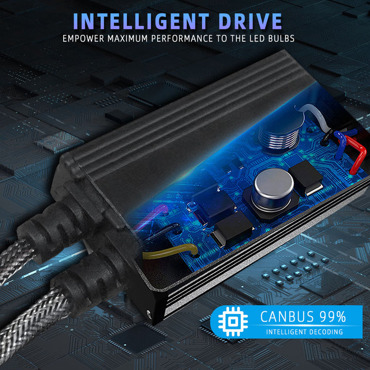 99% COMPATIBLE CON CANBUS Y CONTROLADOR INTELIGENTE: Equipadas con una caja de controlador inteligente externa, estas bombillas cuentan con capacidades avanzadas de decodificación. Son compatibles con el 99% de los sistemas de vehículos, resolviendo problemas comunes como códigos de error en el tablero, parpadeo o interferencias en la radio. El controlador externo también separa la fuente de alimentación del cuerpo de la bombilla, ayudando aún más en la gestión del calor.