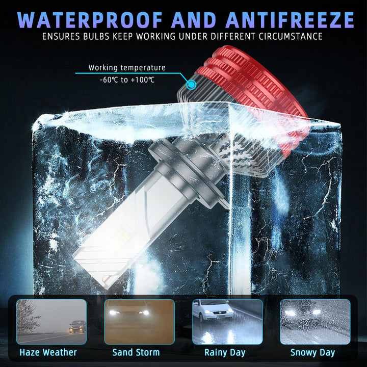 RESISTENTE AL AGUA IP68 Y DURABILIDAD PARA TODO TIPO DE CLIMA: Diseñadas para soportar condiciones extremas, estas bombillas funcionan perfectamente en temperaturas que van desde -60°C hasta +100°C. Ya sea bajo lluvia intensa, nieve, tormentas de arena o neblina, la construcción impermeable y anticongelante garantiza una iluminación confiable. El diseño compacto permite una instalación fácil y sin daños de tipo "plug and play" en minutos.